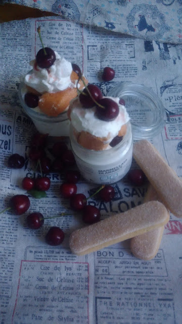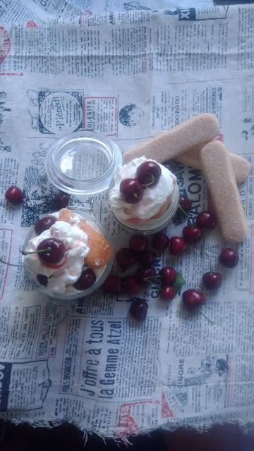 appoggiate qualche ciliegia snocciolata e poi qualche pezzetto di savoiardo
