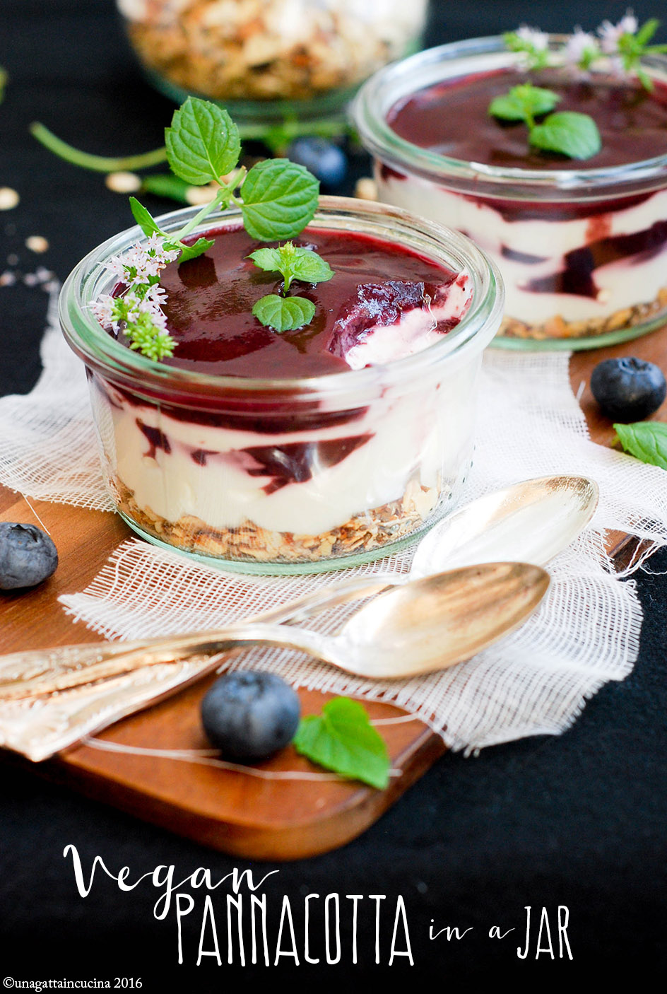 Fill the jars bottom with 1 tablespoon 1/2 of oat flakes (toast for a few minutes in a pan), and then, pour the pannacotta crem