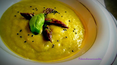 Servire la vellutata con le punte croccanti e un giro d’olio evo, aggiungendo un pizzico di semi di sesamo neri…. e buon appetito!