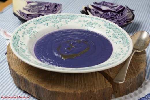 Per questa sera se vorrete una cenetta light partite così…..con una vellutata spaziale sia nel gusto che nel colore! Il cavolo viola poi fa tanto bene al tuo corpo, è un antiossidante e antitumorale come tutti i cavoli.
