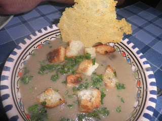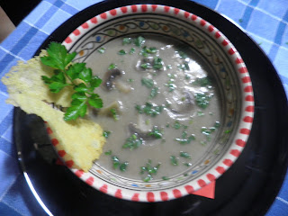 Ingredienti: 500 g di funghi champignon ( se avete la possibilità di trovarli misti è meglio), 2 patate, brodo vegetale, prezzemolo, parmigiano, crostini per accompagnare la zuppa.