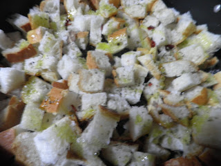 Intanto avrete fatto tostare in forno dei cubetti di pane raffermo che avremo insaporito con olio, sale e peperoncino. Ci serviranno per accompagnare la zuppa.