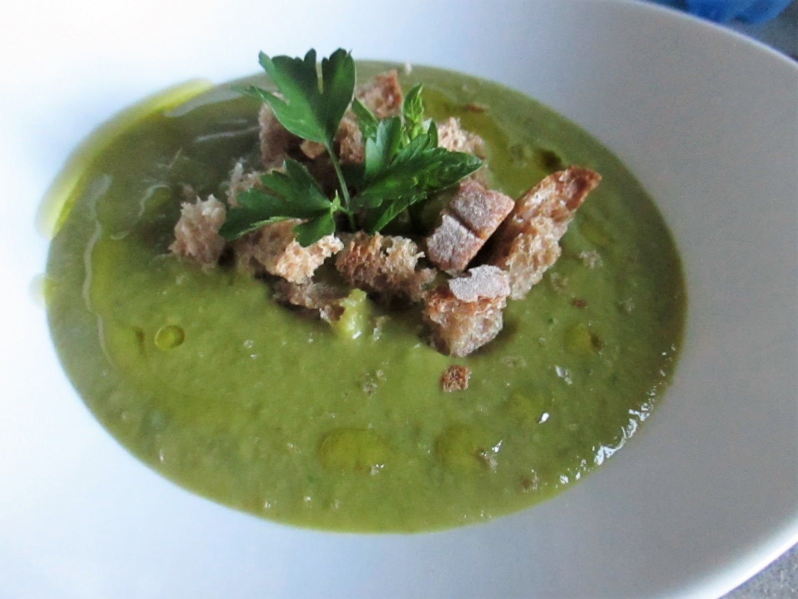 Un délice cette soupe aux courgettes fraîches et les pois. L’addition d’une goutte de crème et de gingembre frais augmente la perception de la saveur, déjà assez grande en soi !!