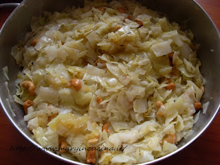 1/2 cavolo verza bianco, 4 patate, olio extravergine d’oliva, sale integrale, curry, erbette bio, una manciata di anacardi.