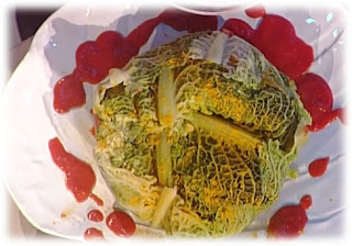 Dopo aver lavato e mondato il cavolo sfogliare le prime 8 foglie esterne avendo cura di non romperle: scottarle appena. Tagliare a metà il cavolo rimasto sbollentarlo in acqua salata per qualche minuto conservando l’acqua di cottura. Scolarlo e tritarlo finemente, stufarlo con la cipolla e l’olio per insaporirlo. Immergere nell’acqua bollente del cavolo la salsiccia per fargli perdere il grasso in eccesso e scolare. Mettere nel latte la mollica di pane e farla ritirare sul fuoco. Amalgamare il cavolo tritato con la mollica, la salsiccia ed aggiungervi il parmigiano, le uova intere, il pangrattato, il prezzemolo, sale e pepe. Foderare con un telo di cotone inumidito una ciotola e adagiarvi le foglie intere del cavolo, versarci il composto preparato, richiudere le foglie e stringere i lembi del telo così da formare un fagotto chiuso con lo spago. Metterlo a lessare in abbondante acqua salata e profumata con i semi di finocchio. Portare a cottura per un’ora circa. Scolarlo, toglierlo dal telo e servirlo con una salsina di pomodoro.