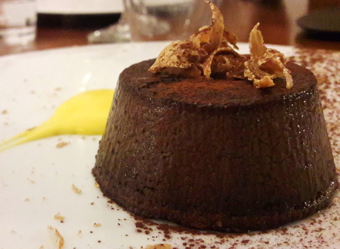 Tra i dessert in menu, la scelta è caduta su un golosissimo e tipico Bonet al Cioccolato e Amaretti, fine pasto piemontese che non necessità di presentazioni.