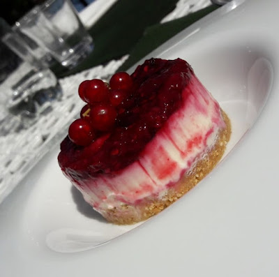 La Cheesecake ai Frutti di Bosco, leggera ed in una deliziosa versione monoporzione, ha concluso il nostro primo pasto a Villa Pizzini, tardivo per via del viaggio ma niente affatto veloce.