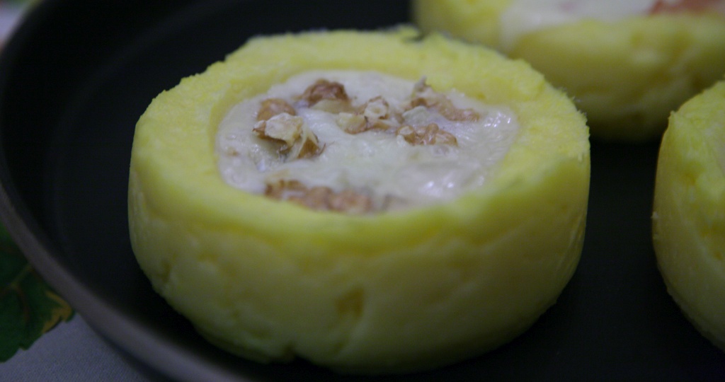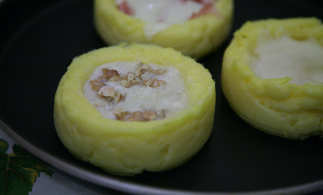 Oggi un antipasto carino e gustoso che può essere adatto per i pranzi delle feste. Protagonista la polenta, ma utilizzata come contenitore per un ripieno fatto di gorgonzola e noci.