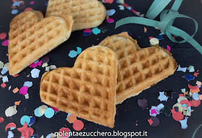 - Scaldare lo stampo per le cialde poi cuocere i waffle mettendo l’impasto a cucchiaiate e facendolo cuocere per 2′ fino a farlo dorare. Attenzione a non eccedere nella quantità dell’impasto perchè fuoriesce ai lati.