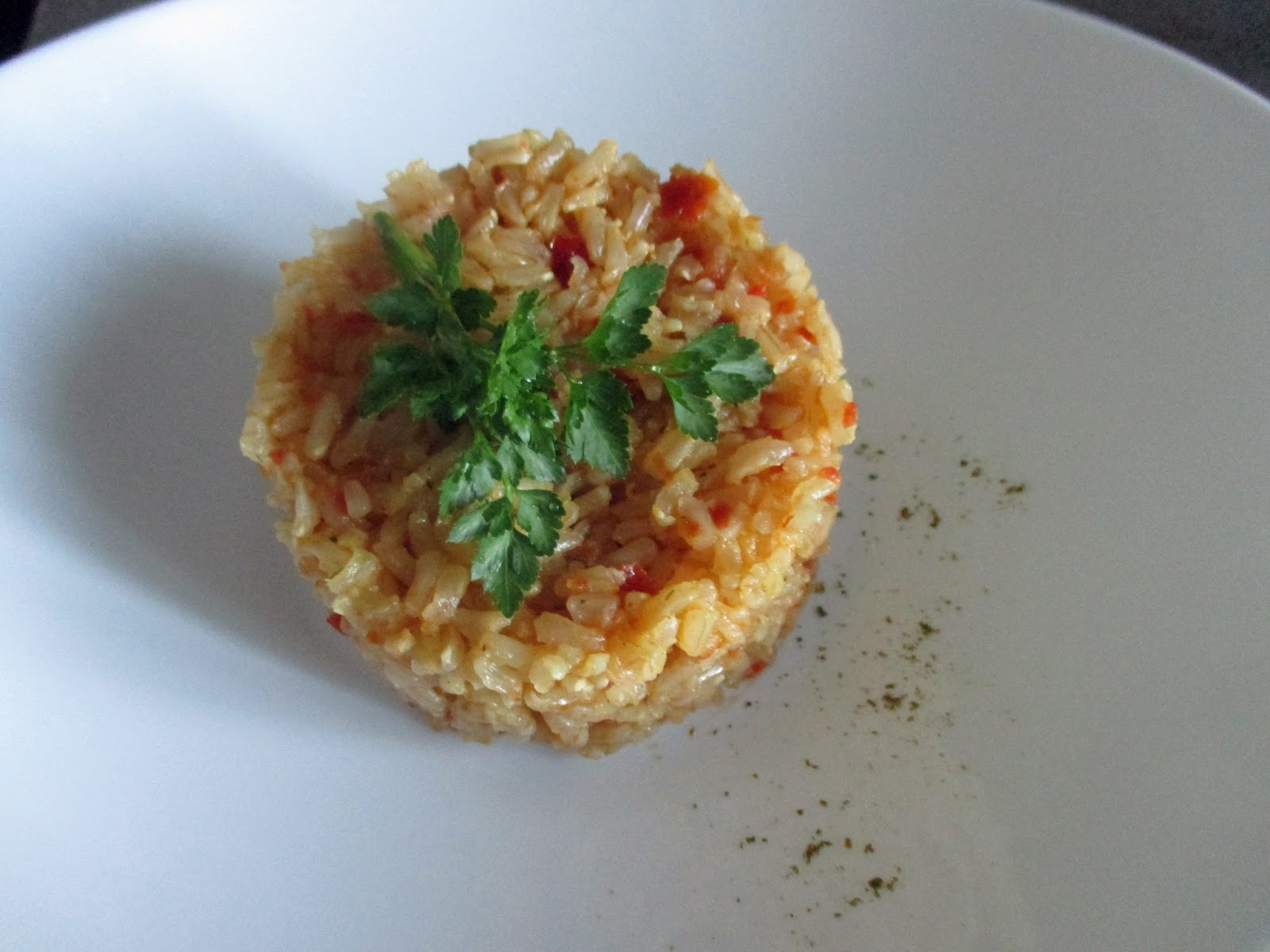 Faire bouillir le riz selon les indications du paquet. Quand il est prêt, les égoutter et les laisser faire sauter avec des moules, les pois, le riz, l’ail, 2 cuillères à café de sauce de soja et le curry. Sauté puis ajouter le persil haché à la main afin de ne pas oxyder et servi en lui donnant une forme à l’intérieur des cercles à pâtisserie.