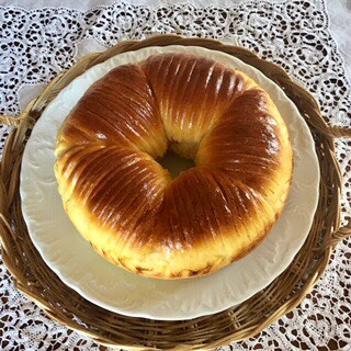 Era da un pò di tempo che facevo la corte a questo Pan Brioche. Troppo scenografico, troppo bello per non essere invogliata a farlo, nonostante la paura di combinare un flop. E così prima di sporcarmi le mani di farina mi sono documentata, ho visitato diversi blog (qui e qui) e ho visto pure un video. Alla fine mi sono decisa. E’ un lievitato semplice da fare che nella forma ricorda un gomitolo di lana per via della sua superficie sfrangiata. Contiene pochissimo zucchero, motivo per cui si accompagna sia con una marmellata che con il salato. Condizione essenziale per la riuscita del dolce sono le dimensioni dello stampo: 20 cm di diametro e 7 di altezza. Vi assicuro che il risultato è stato super super soddisfacente, bello, sofficissimo e super buono!