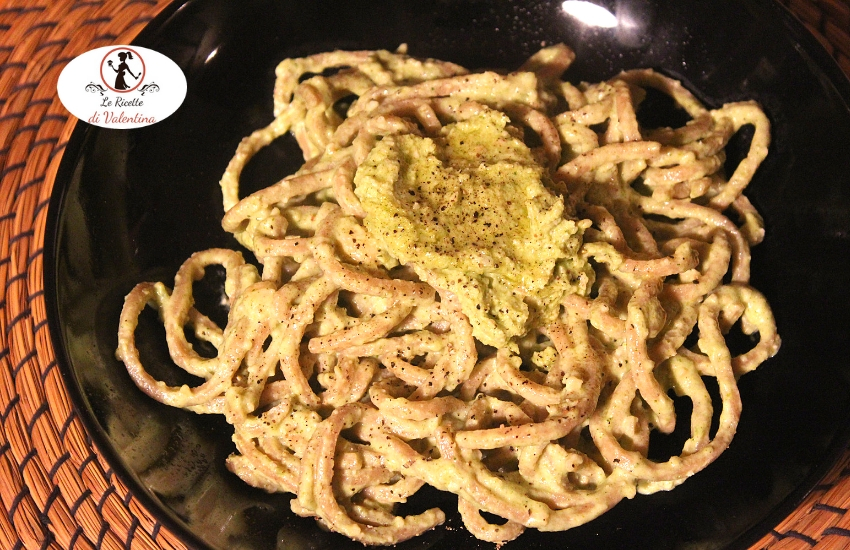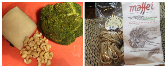 Ho scelto gli spaghetti alla chitarra di semola integrale abbinati ad un pesto di broccoli e pecorino sardo, un piatto estremamente semplice da preparare ma ricco di nutrienti che è piaciuto anche tanto alle gemelle.