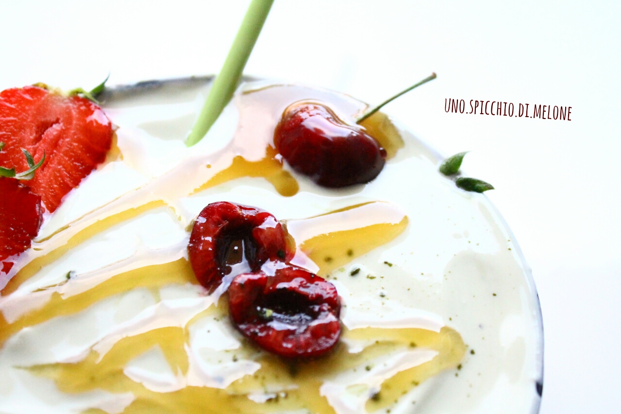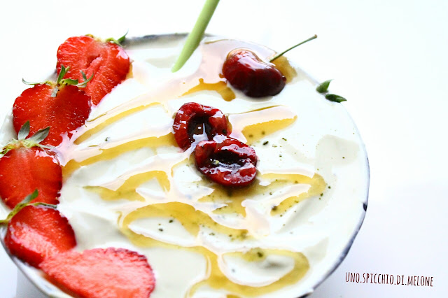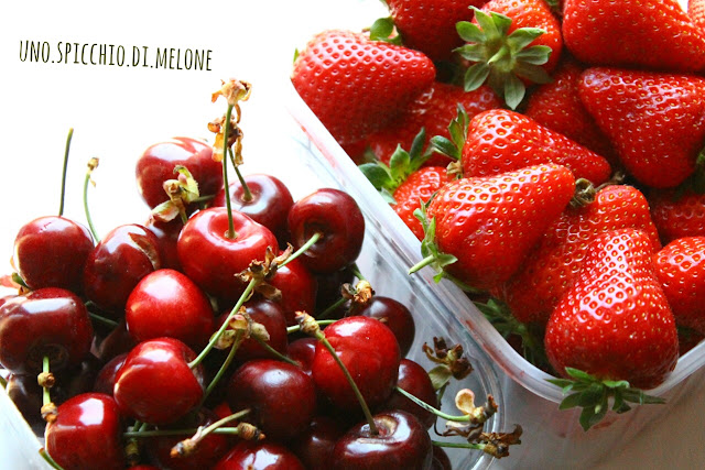 frutta fresca (io, in questo periodo, non faccio altro che mangiare fragole e ciliegie)