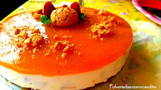 Ho aggiunto dei bei pezzetti di pesca noce all’interno per dare un tocco di corposità e nella base di biscotto ho aggiunto gli amaretti.
