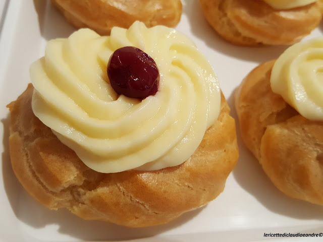 - Una volta cotte e raffreddate le zeppole mettere la crema pasticcera in una sac a poche con la bocchetta grande a stella e decorare.