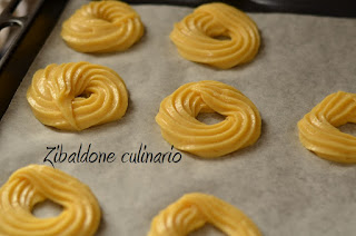 Trasferire l’impasto in un sac à poche con bocchetta a stella (io 10 mm) e formare le zeppole su una teglia ricoperta di carta forno.
