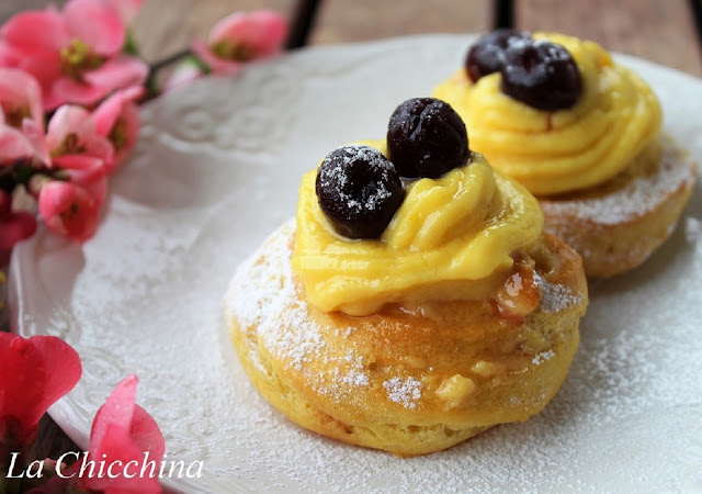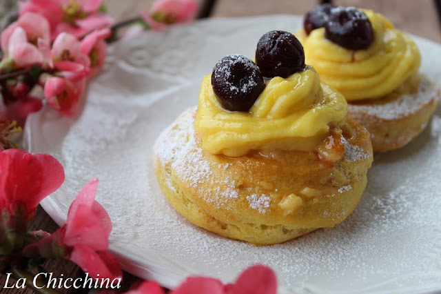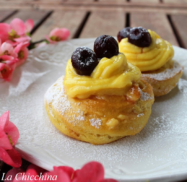 Cottura: 25 minuti in forno preriscaldato (15 minuti a 200° e 10 minuti a 180°) per le zeppole + una decina di minuti per la crema pasticcera