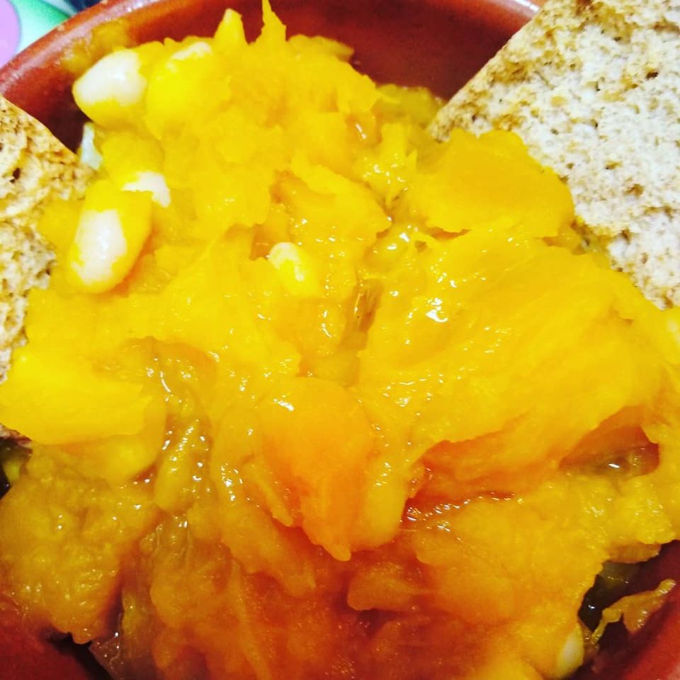 Io ho preparato una buona zuppa di fagioli e zucca di Zuccherissima ; che io ritengo #piattounico, in quanto aggiungo sempre del pane tostato.