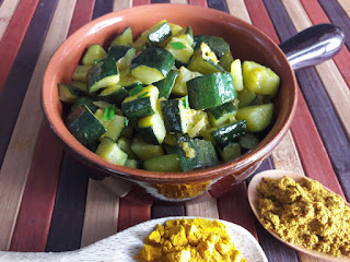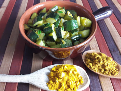 All’indiana è, in realtà, un modo di dire: ho voluto chiamare così questo piatto per indicare la presenza di due spezie tipiche di quella cucina asiatica, il curry e la curcuma. E’ un contorno molto aromatico e saporito, ma la quantità di spezie deve essere dosata secondo il proprio gusto, io non abbondo troppo con le spezie perché mi piace sentirle ma non in modo preponderante, per me devono dare vivacità al piatto ma senza prendere il sopravvento sugli altri sapori. Io trovo che queste zucchine accompagnino bene soprattutto il pesce e la carne arrostiti. Così possiamo affrontare la necessaria dieta post-feste senza penalizzare il gusto!