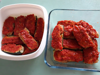 Salare l’interno delle barchette di zucchine e distribuirvi la farcia di tonno livellandone la superficie, quindi allineare le “barchette” ben ravvicinate in una teglia unta d’olio. Coprire ogni zucchina con un po’ di salsa di pomodoro, qualche goccia di olio e un pizzico di origano.