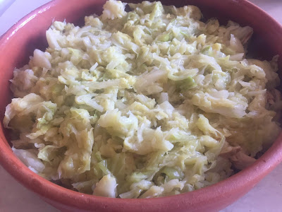 Lavate il cavolo verza, togliete le foglie esterne e poi tagliatelo a listarelle e lessatelo in abbondante acqua salata. Scolate.