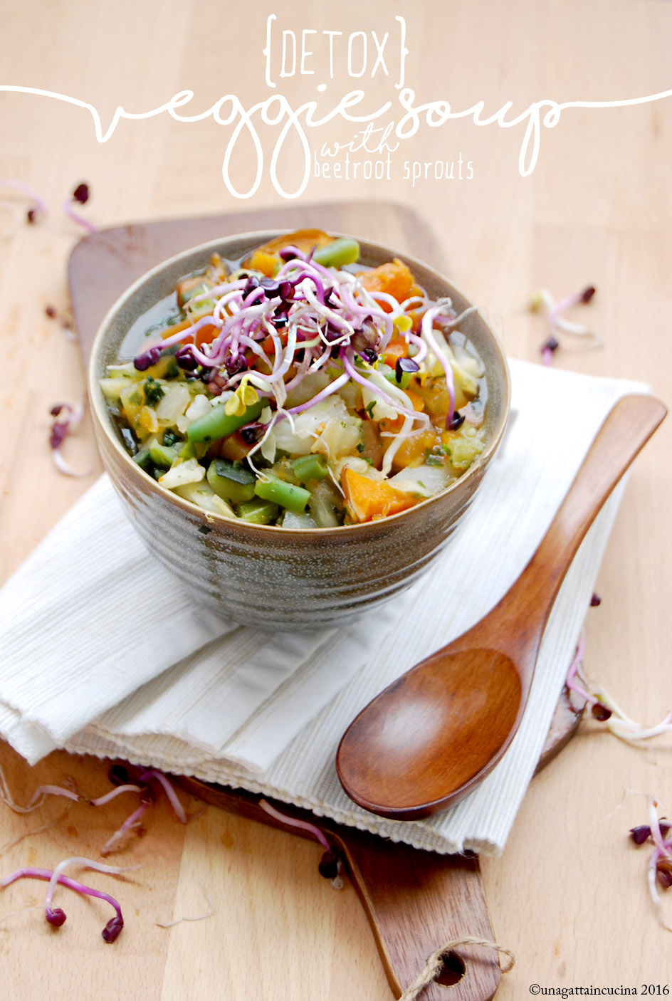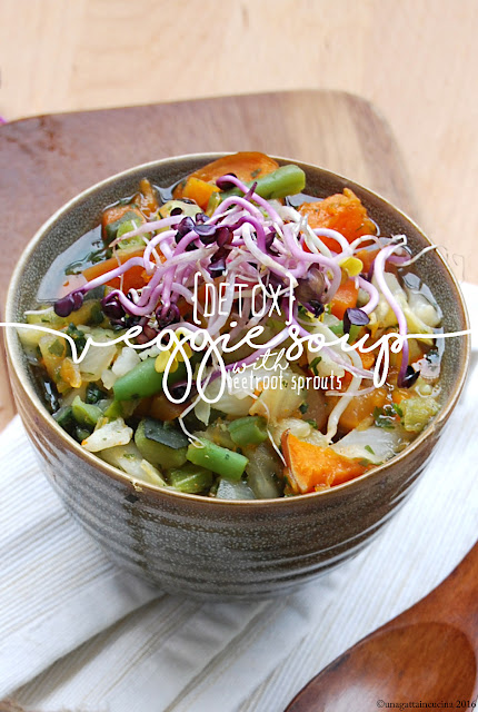Iniziamo con le cose più semplici, una zuppa ricca di tante verdure, spezie e quel qualcosa “in più” come i germogli di barbabietola (che potete sostituire con altri germogli, che potete fare anche a casa ), ricchi di proprietà nutritive.