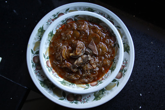 Cottura 5 ore, a fuoco lentissimo, rigirando spesso ed aggiungendo man mano il brodo caldo quando la zuppa tende ad asciugarsi. L’uso di una pentola in ghisa è particolarmente apprezzato in questo caso e non per fighetteria quanto per maggiore facilità ad usare una fiamma bassa sfuttando al massimo le capacità conduttive del materiale.