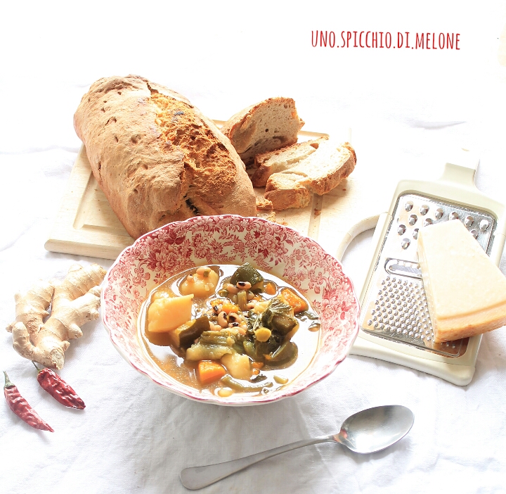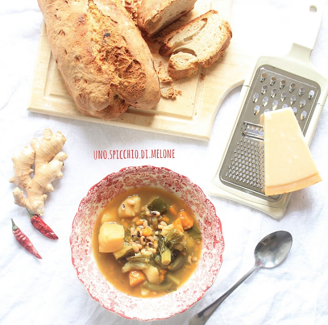 Ovviamente la zuppa la potete servire con fette di pane raffermo, condire con peperoncino e zenzero o il parmigiano o il pepe…insomma…qui ognuno di voi si può sbizzarrire come vuole!