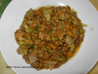 Tagliare a cubetti la zucca con tutta la buccia, tagliare il broccoletto e la verza in pezzetti. Riempire una pentola capiente con lenticchie e zucca e riempirla d’acqua. Far cuocere per 10 minuti. Aggiungere verza e broccoletti e proseguire la cottura per altri 20 minuti. Aggiungere sale, curcuma ed olio, mescolare e portare in tavola.