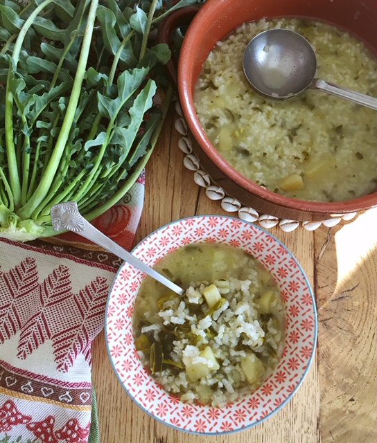 Questo ortaggio l’ho conosciuto per la prima volta qualche giorno fa, era nella mia cassetta di verdura bio, l’ho utilizzato per preparare una frittata ed ora per preparare questa minestra. E’ un mix di sapori, ricorda il broccolo ma ha anche la consistenza e il sapore dolce delle biete.