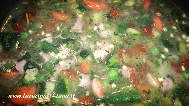 Un ottimo pasto in zona, per pranzo o per cena di 3 blocchi, quindi circa 300 Kcal, si tratta di una minestrone con orzo, bilanciato nelle proteine dal prosciutto cotto e dal parmigiano. Sazia ed è proprio buona