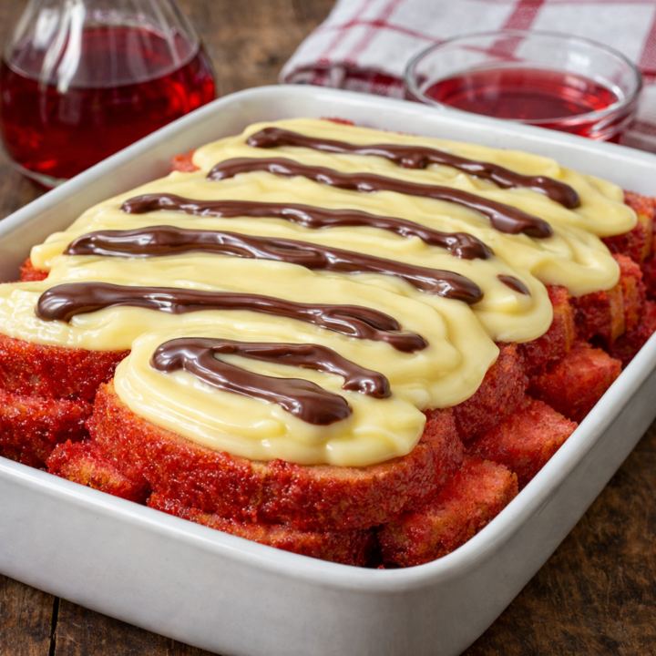 Fare uun strato di fette sul fondo di una zuppiera, preferbilmente rettangolare, distribuirvi sopra la crema pasticcera.