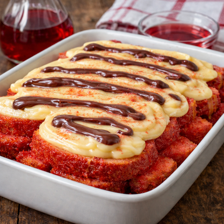 Affettare la ciambella ed immergerle velocemente nell’alchermes.