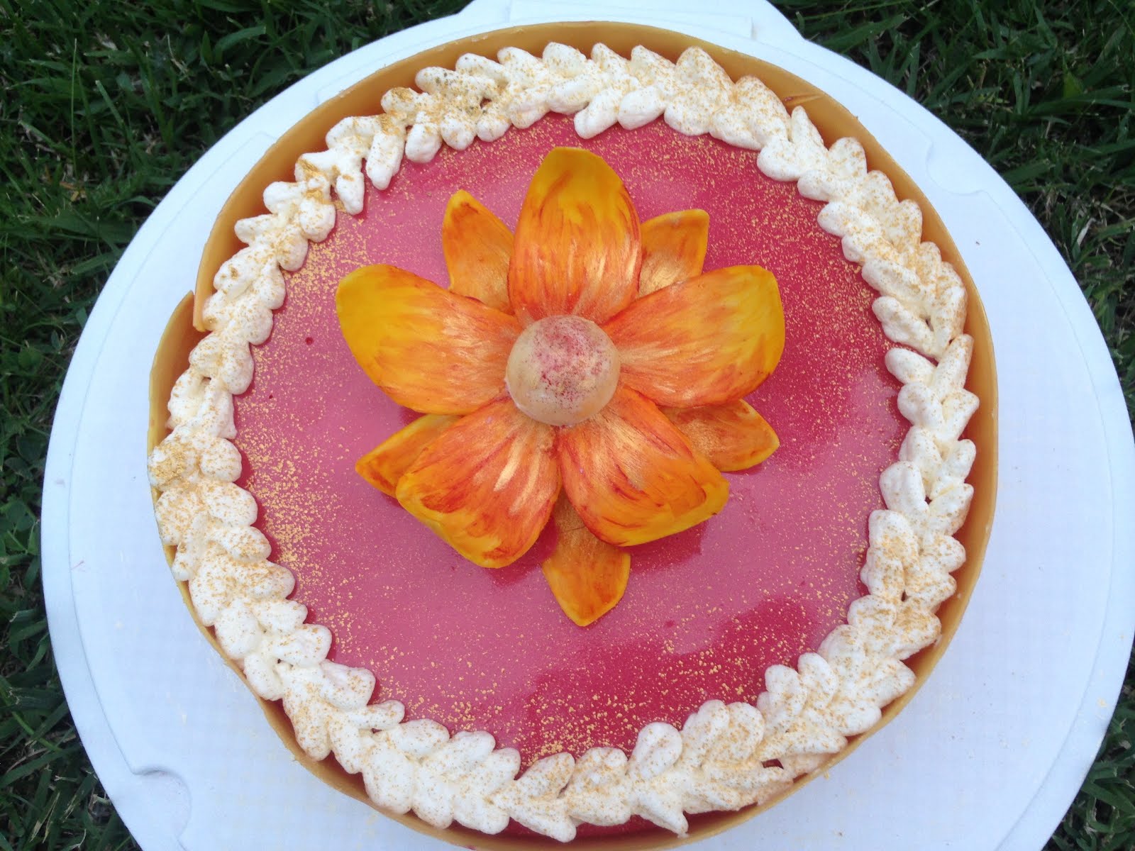 Adagiate al centro del dolce il fiore in cioccolato.