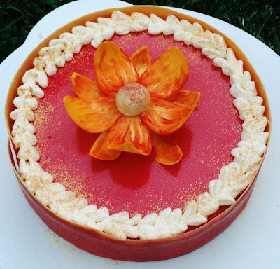 Con l’aiuto di un pennello da cucina spennellate il cioccolato rosso in una sola direzione e lasciate cristallizzare ( otterrete l’aspetto spennellato). Con una spatola a gomito spalmate sopra al rosso il cioccolato giallo, sollevate la banda e mettetela in forma all’interno dello stampo in cui colerete il dolce. Siccome il cioccolato bianco tende a contrarsi cristallizzando, vi consiglio di fermare la banda con della pellicola trasparente, fasciandola all’interno.