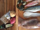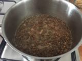 Lavate, pulisce, eviscerate il pesce:ricavate i filetti (foto 1) e tagliateli a tocchetti, tranne le triglie alle quali priverete solo la testa e le interiora (foto 3). Rosolate in una padella l’olio evo, la cipolla tritata finemente e la patata scucciata tagliata a cubetti piccoli. Unite le lenticchie e la foglia d’alloro. Bagnate con il brodo vegetale e continuate la cottura per 40 minuti. Eliminate la foglia d’alloro (foto 2), frullate, passate al setaccio. Unite alla crema un filo d’olio evo e tenete da parte.