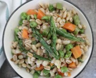 Insalata di orzo con piselli, carote ed asparagi