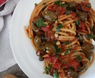 Amo molto la puttanesca è questa è una versione con l’aggiunta delle noci sgusciate e tritate grossolanamente; tradizione molto in uso nell’entroterra Vesuviano. L’aggiunta mi è piaciuta molto. Ingredienti: 500 g di spaghetti 800 g di pomodorini in barattolo 1 spicchio d’aglio 2 cucchiai di capperi dissalati 4 cucchiai di olive nere di Gaeta o Continua a leggere..