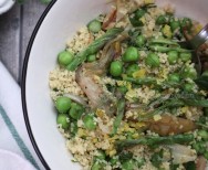 Cous cous con piselli, carciofi, asparagi, limone e zafferano